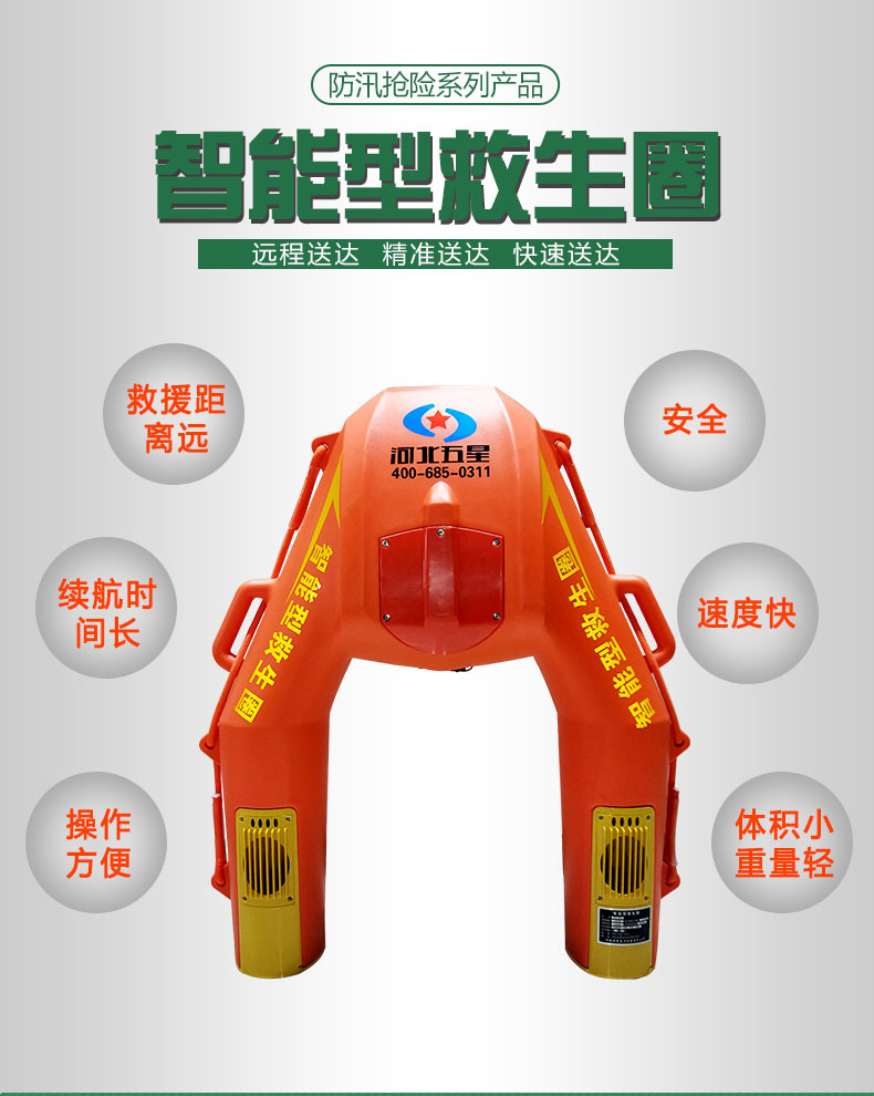河北五星“霸王龍”WX-500型水上救生遙控機(jī)器人(智能型救生圈、智能型遙控救生圈)用于落水人員的救援,時速可達(dá)4米/秒,一旦碰到險情,會以很快的速度來到你身邊。智能型救生圈操作簡單,只要會操控游戲手柄就能夠?qū)崿F(xiàn)遠(yuǎn)距離、快速、精準(zhǔn)送達(dá),實(shí)現(xiàn)對落水人員的快速救援。