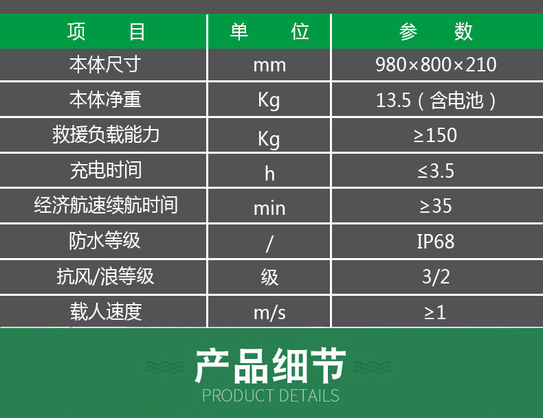 | 救援負(fù)載能力 | ≥150kg | ||