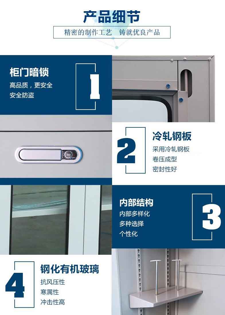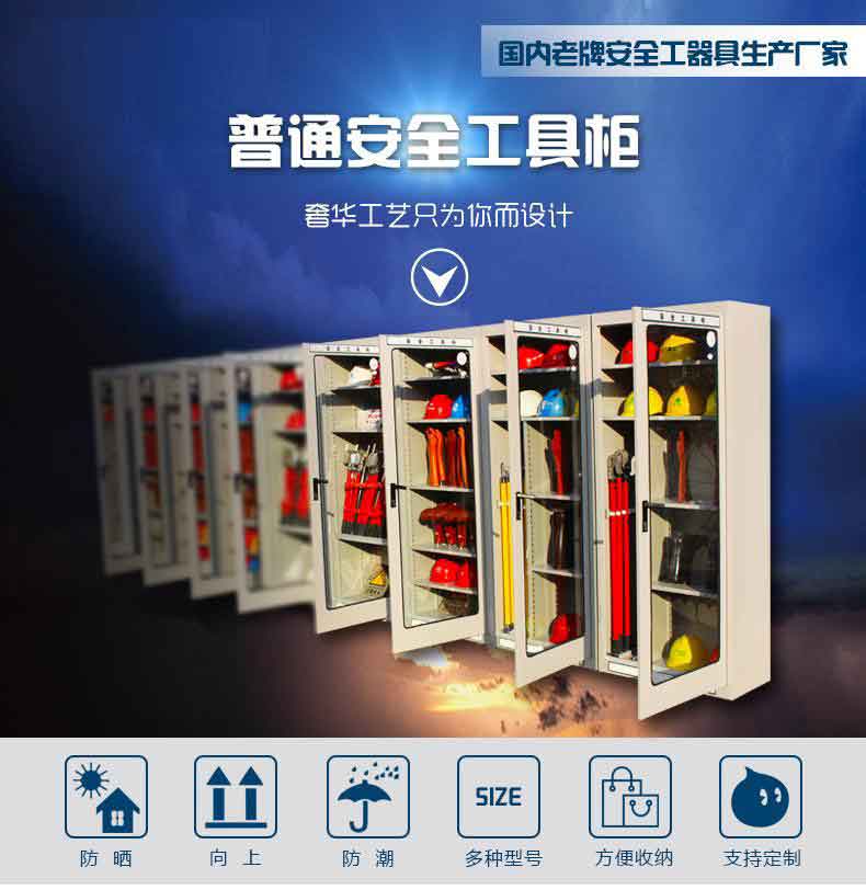 電力安全工具柜又稱安全工器具柜,按功能可以分為普通排風除濕柜,智能烘干除濕柜,智能抽濕除濕柜等 外殼選用1.2優質冷板,采用磷化鋅系、藝術型靜電噴涂,高強度鋼化透明玻璃(外觀色為微機灰)。接地線均配有接地線繞線架及帶夾反光編號牌,使接地線纏繞規范不易損壞,擺放整齊使用方便;絕緣手套配有防粘連撐板,絕緣擋板、絕緣棒、驗電筆、操作桿均設有橡膠墊定位卡,安全帶、腳扣、鑰匙設有專用掛鉤,標示牌按種類分格放置,圍網配有專用包,網桿配有專用筒,網桿座分格放置,防毒面具配有專用箱,呼吸器設有專用滑板。廣泛應用于各種電壓等級的變電站、集控站、線路工區以及電力公司客服中心等單位和部門,并適應不同溫濕度地區的使用。